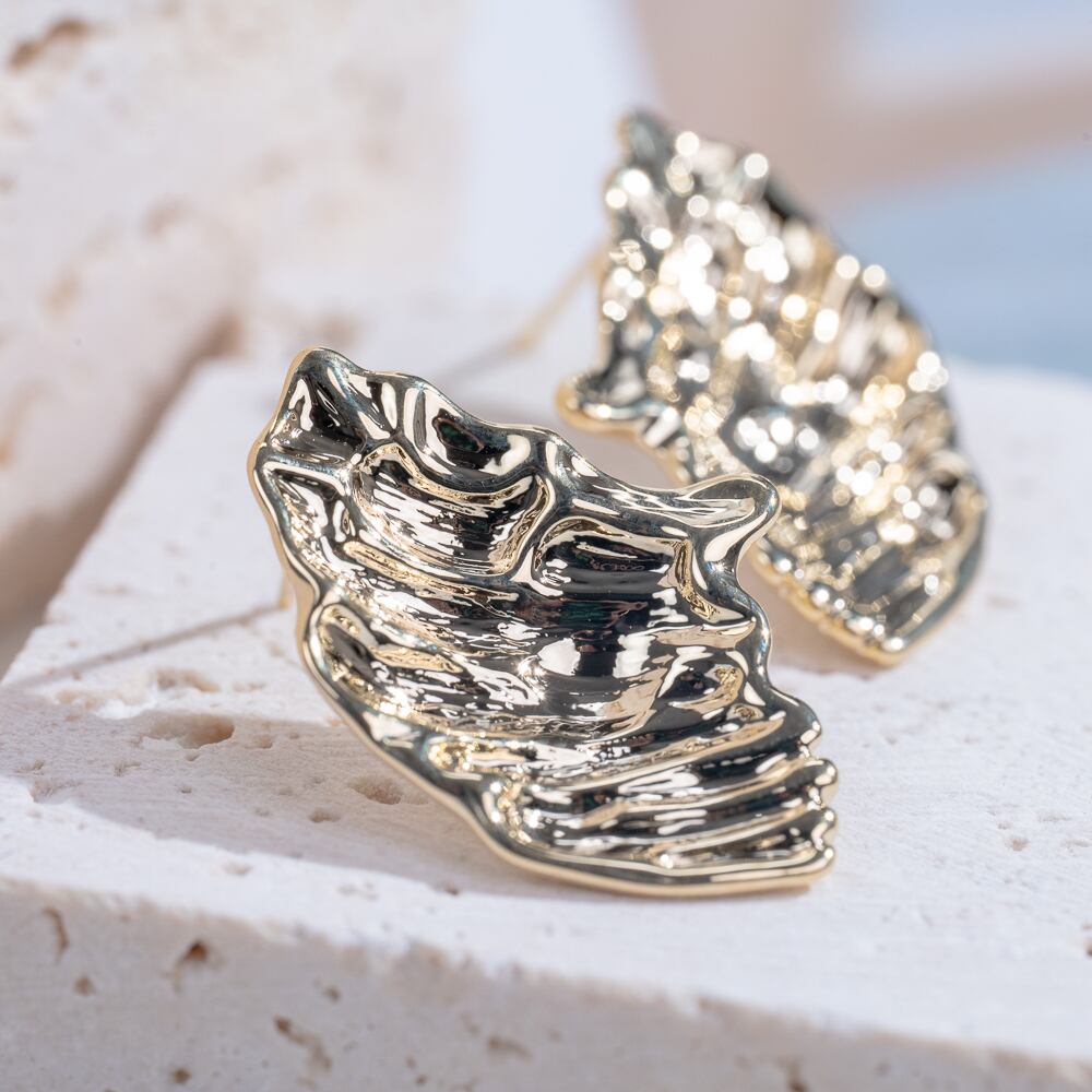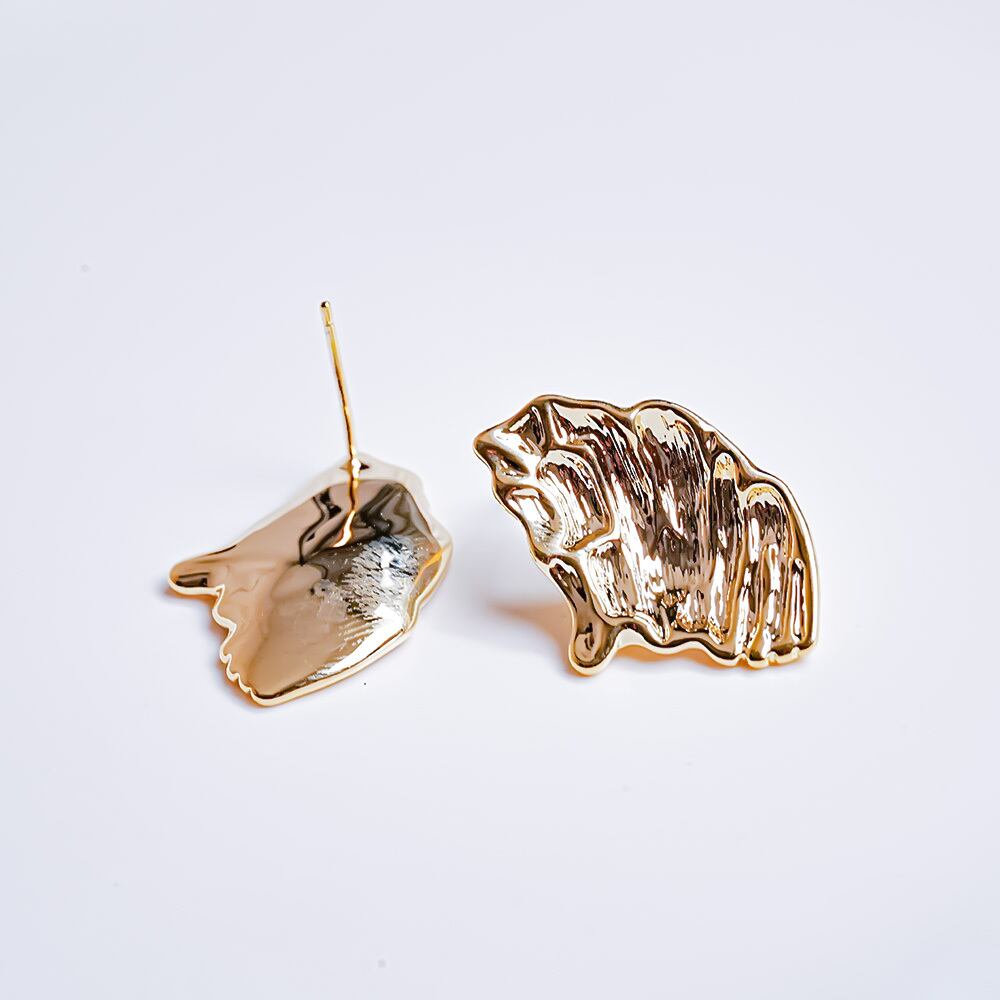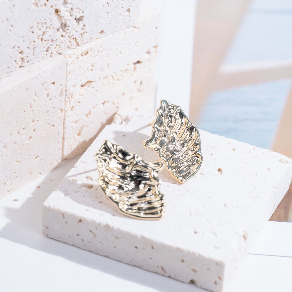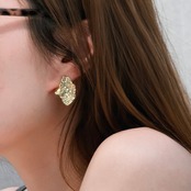 くしゃっとしたフォルムのゴールドメタルプレートのピアス。
